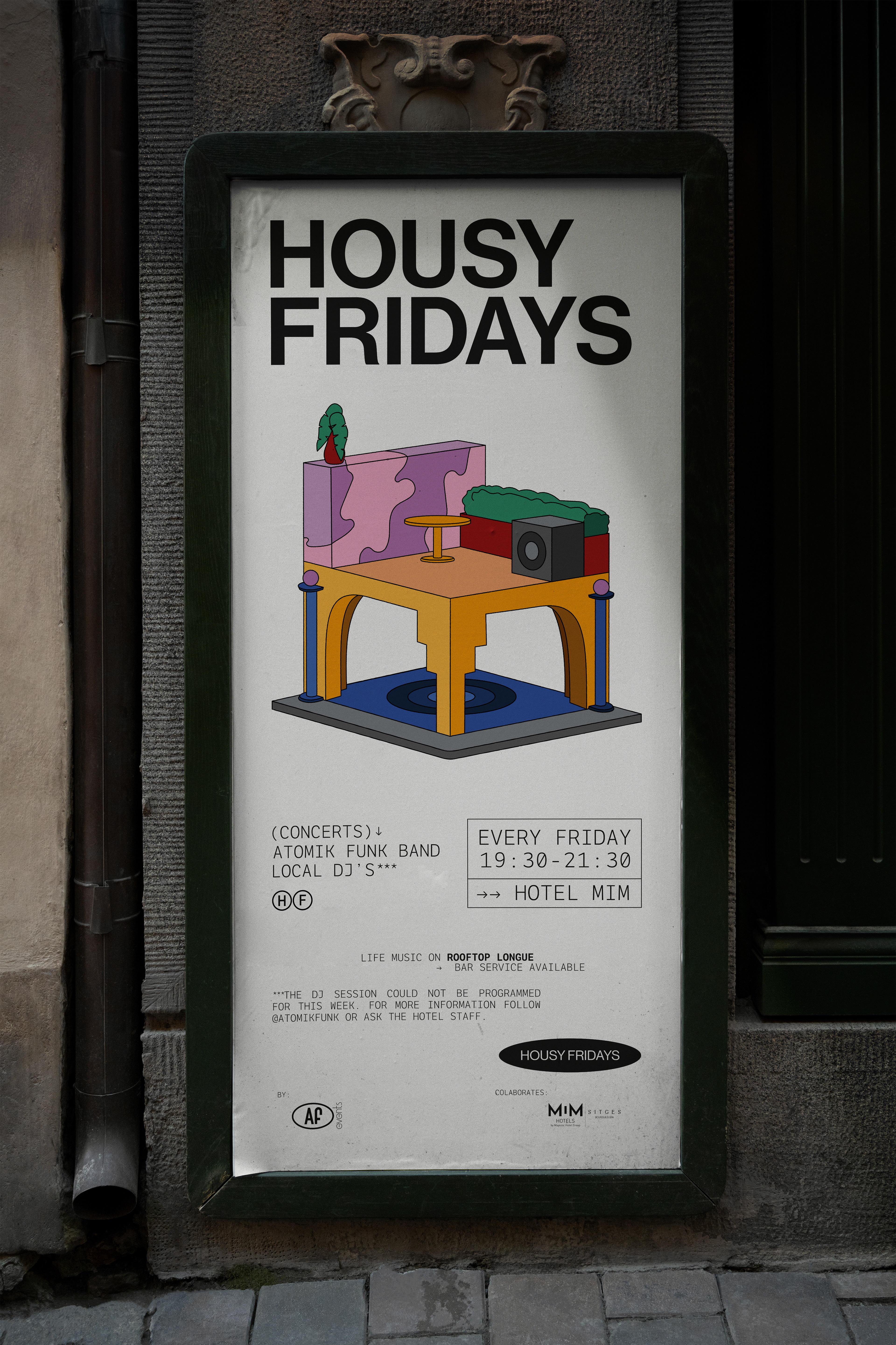 Housy Fridays is an event led by the Sitgetan group Atomik Funk. Every summer Friday becomes the best time of the week when you are relaxing on the terrace of the Hotel Mim while having a drink and listening to the best music.